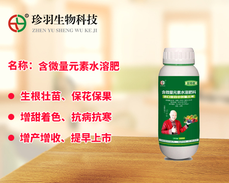 大量元素水溶肥料為經(jīng)水溶解或稀釋,用于灌溉施肥、葉面施肥、無土栽培、浸種蘸根等用途的液體或固體產(chǎn)品,可以葉面施肥、浸種蘸根、灌溉施肥,灌溉包括噴灌、滴灌等方式進(jìn)行灌溉時(shí)施肥,既節(jié)約用水,又節(jié)約施肥,而且還植物吸收快,大量元素水溶肥是一種可以完全溶于水的多元復(fù)合肥料,它能迅速地溶解于水中,更容易被作物吸收,而且其吸收利用率相對(duì)較高,我們看一下珍羽生物的大量水溶肥。